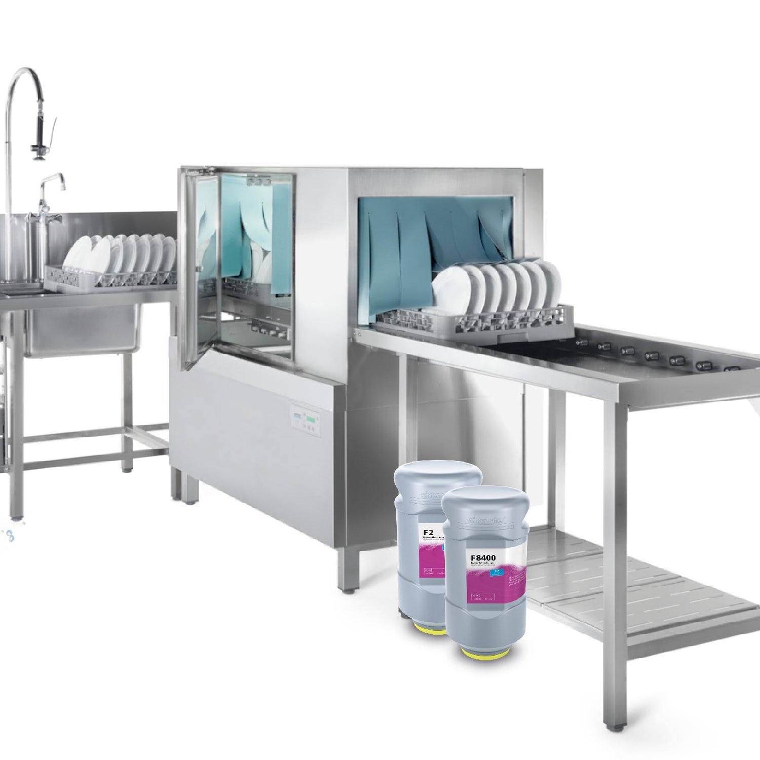 - Detergentes en polvo específicamente diseñados para que los utilices en los sistemas de lavado automático de alta capacidad, como los nuestros, que garantizan un rendimiento óptimo y una mayor durabilidad de los equipos.